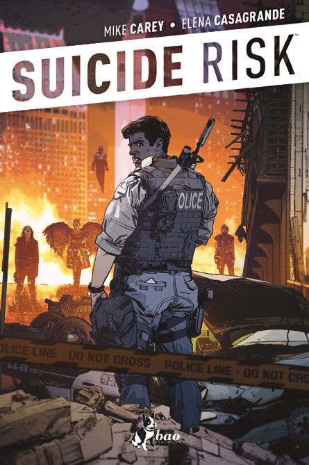 Leo è un poliziotto in una San Diego infestata dai criminali con superpoteri. Perché i superpoteri si comprano, c’è un sottobosco criminale che li fornisce a chiunque possa permettersi l’acquisto. Mike Carey (Lucifer, The Unwritten) specula in modo brillante sulle conseguenze della presenza dei metaumani in un mondo realistico e crea questa serie unica al mondo, illustrata con perizia spettacolare dall’italiana Elena Casagrande. BAO pubblicherà tre volumi di Suicide Risk nel 2014, con un ampio corredo di materiali extra in esclusiva per l’edizione italiana, in un’edizione degna di questi grandi autori e della tradizione di altissima qualità tipica di BAO.